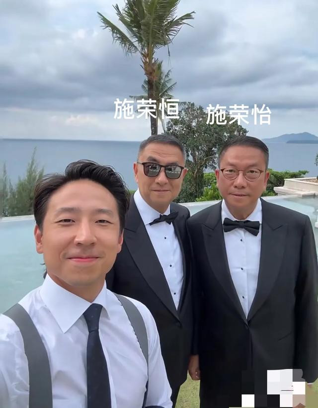 这场婚礼是施伯雄家这边的,施伯雄的爸爸施荣怡还有三叔施荣恒都来了。施伯雄脱下西装,他穿的是一条背带西装裤,他的的穿搭很老钱风。施伯雄和爸爸施荣怡长的很像,施伯雄的爸爸和三叔也跟一个模子刻出来的一样,这一家人长的都很像。